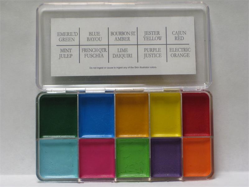 Палитра спиртовых красок Mardi Gras из 10 цветов. Разводятся и смываются специальным спиртосодержащим активатором или разведенным спиртом. |